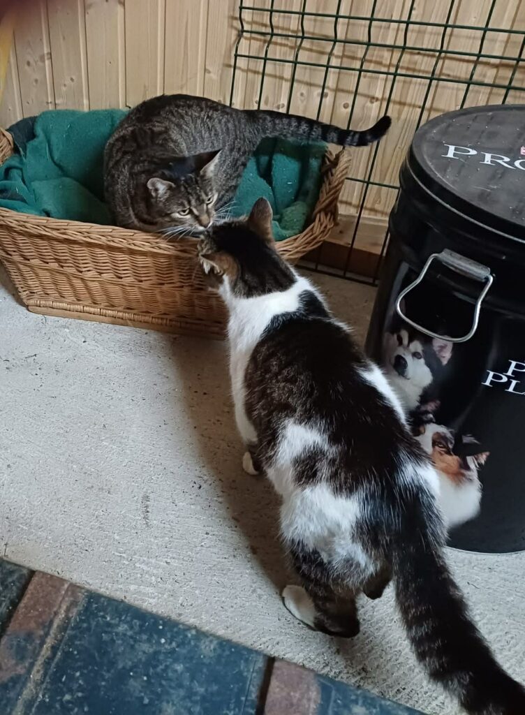 Das Foto zeigt, wie dringend Katzen Sozialpartner brauchen, sein neuer Freund und er waren direkt unzertrennlich. Wir freuen uns für unseren ehemaligen Schützling!