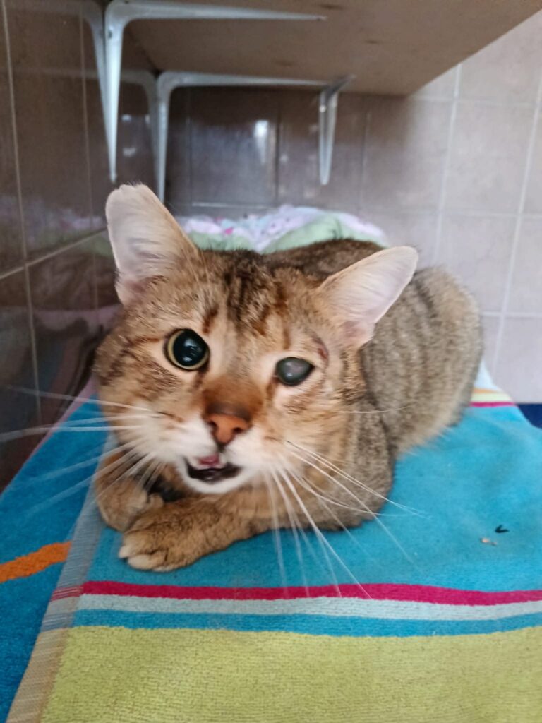 Aufgrund einer Fehlempfindung am kaputten Auge hat er sich anfangs immer wieder wundgekratzt, aber auch das hat sich nun gebessert und ist schon fast gänzlich verheilt. Alles spricht also dafür, dass unser großes Sorgenkind und Wunder bald in ein richtiges Zuhause entlassen werden kann!